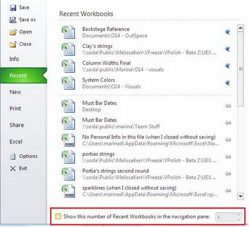 Office 2010 Beta也支援使用鍵盤快捷鍵打開最近的文檔,快捷鍵為Alt+F+1(或是2,3等)。