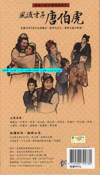 軟體名稱:楊麗花歌仔戲精選:風流才子唐伯虎 (民國73年台視年度大戲 迴響熱烈 值得典藏! )(dvd6片裝)